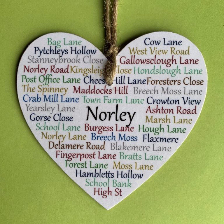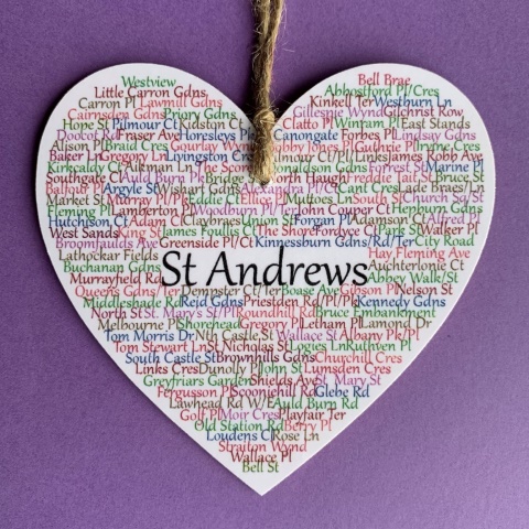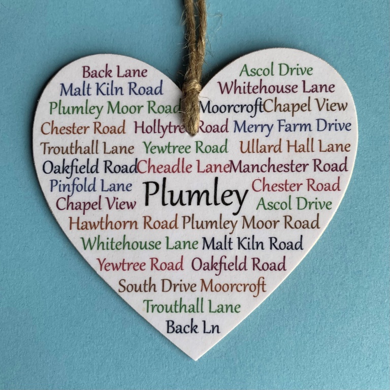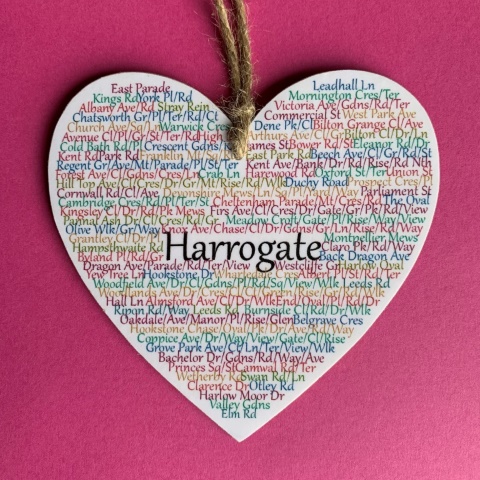 Over 900 areas all over the UK and beyond, professionally printed on multiple sizes of wooden hearts, or framed prints